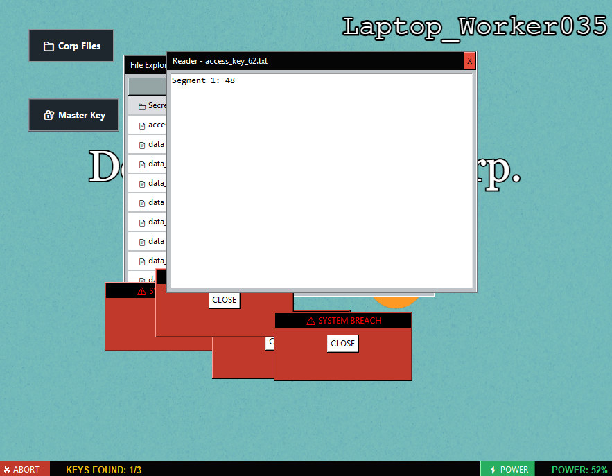 FIND THE 3 SEGMENTS OF THE 6 digit KEY IN THE FINDER to UNLOCK ThE COMPANY's FILES